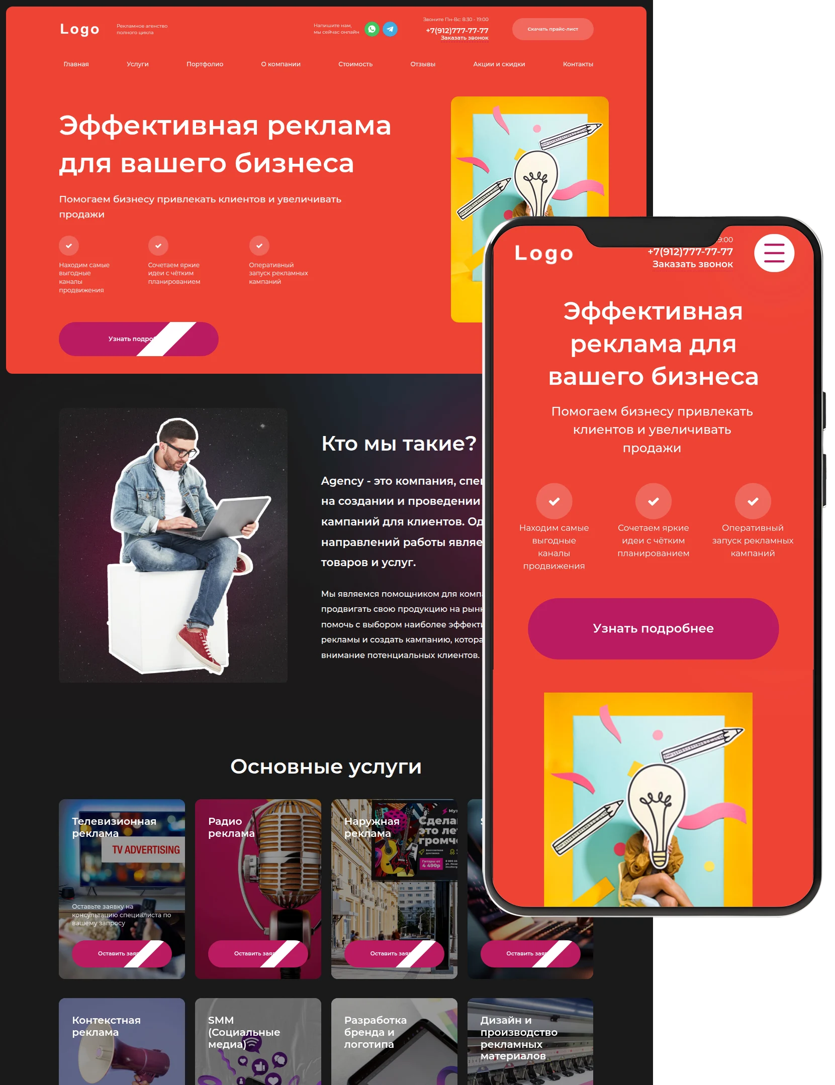 - Полностью адаптивный дизайн для всех устройств