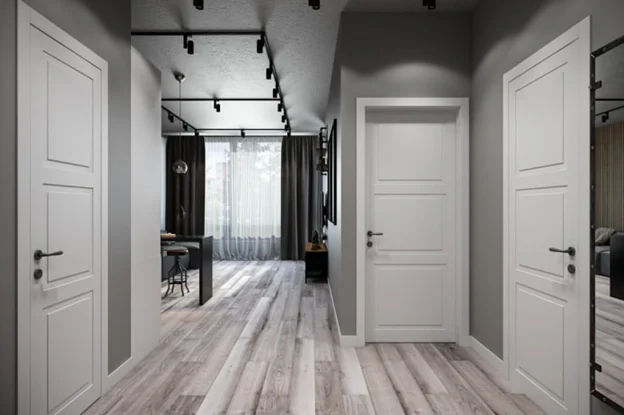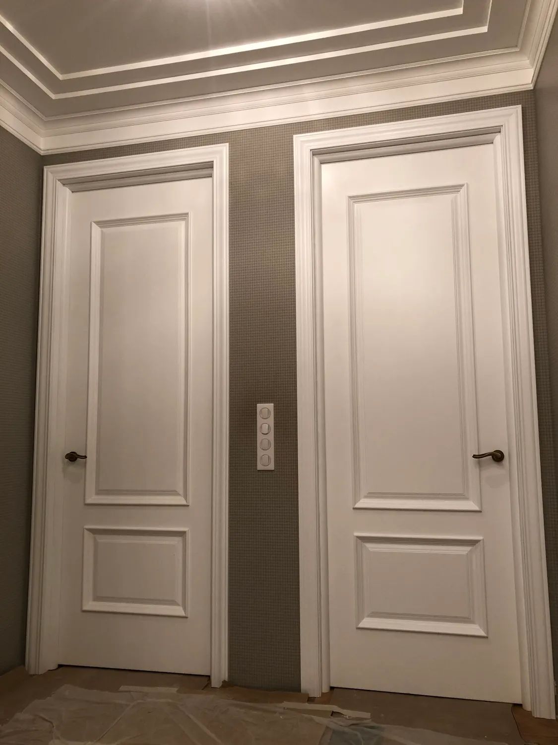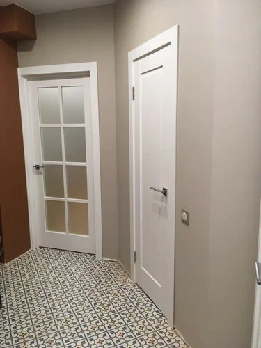 сборка и монтаж коробки, врезка петель, навешивание и регулировка полотна, монтаж наличника с 2-х сторон.