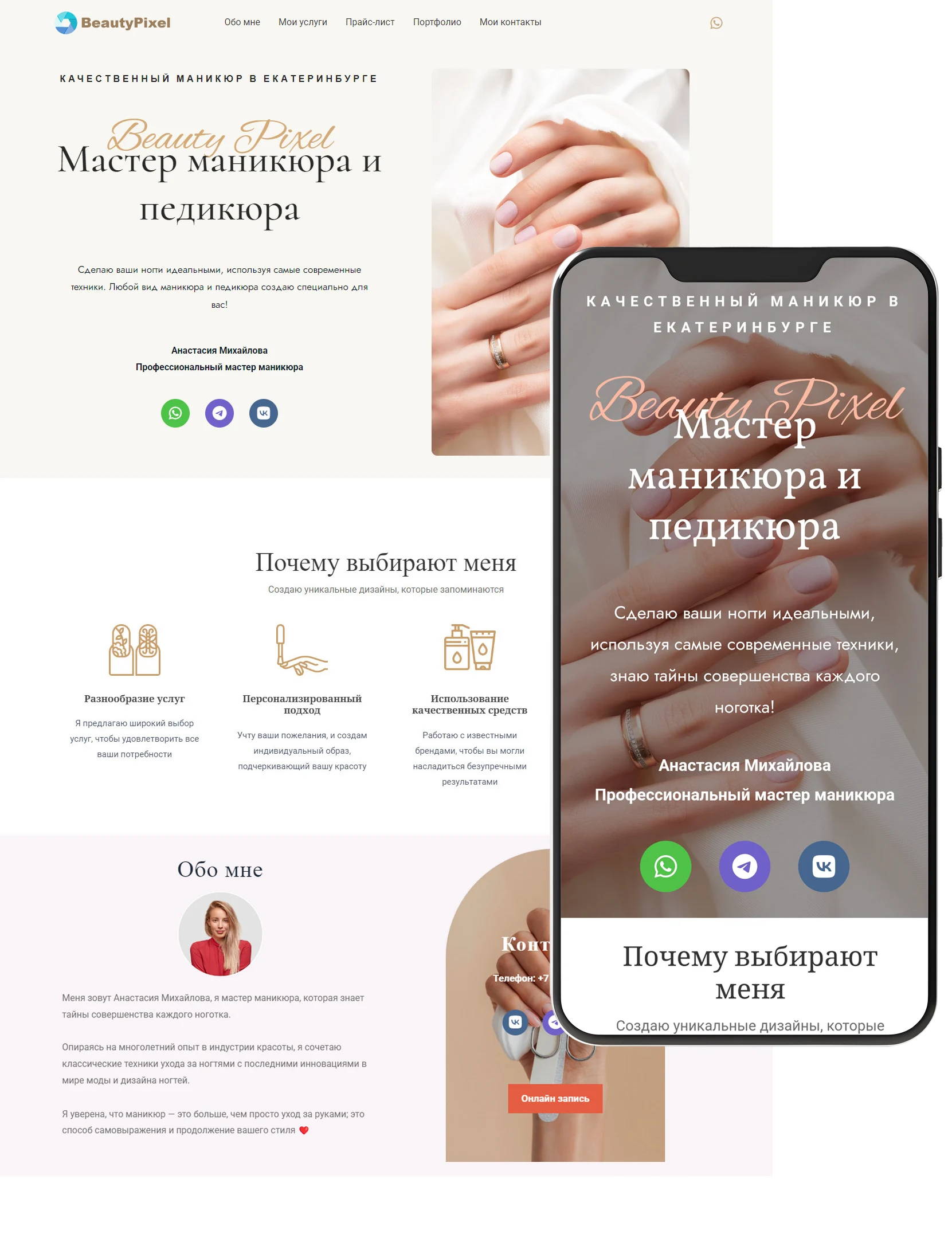 Такой сайт создаётся с учётом специфики индустрии красоты: акцент на визуальную подачу, удобную навигацию и простую форму записи. Благодаря платформе WordPress вы легко сможете редактировать тексты, добавлять новые фотографии работ и поддерживать актуальность информации. Купить готовый сайт для мастера маникюра — значит отказаться от долгой и затратной разработки, получив продукт, который уже готов к использованию. Это экономия не только средств, но и ресурсов, ведь вы сразу начинаете продвигать свои услуги. Грамотный дизайн, корректно оформленные блоки, оптимизация под поисковые системы — всё это помогает привлечь больше клиентов и повысить доверие к вашему сервису. Ваш сайт станет отражением профессионализма и стиля, выделяя вас среди конкурентов. Сегодня пользователи всё чаще ищут мастеров через интернет, и важно, чтобы ваше предложение выглядело привлекательно и современно. Выбирая готовый сайт для мастера маникюра на WordPress, вы инвестируете в рост и стабильность своего бизнеса, создавая удобную и надёжную платформу для связи с клиентами. Сайт в индустрии красоты выполняет сразу несколько задач: он привлекает внимание, формирует доверие и помогает организовать рабочие процессы. Благодаря профессиональному дизайну и понятной структуре, клиенту легко найти нужную информацию, посмотреть примеры работ и записаться на услугу. Это особенно важно, когда конкуренция высока, а внимание пользователя ограничено. Визуальная эстетика, простота взаимодействия и продуманная подача делают ресурс мощным маркетинговым инструментом. Сайт работает круглосуточно, позволяя клиентам оставить заявку в любое время. Это удобство и для мастера, и для посетителя. Такой подход помогает выстраивать стабильный поток клиентов и уверенно развивать личный бренд.