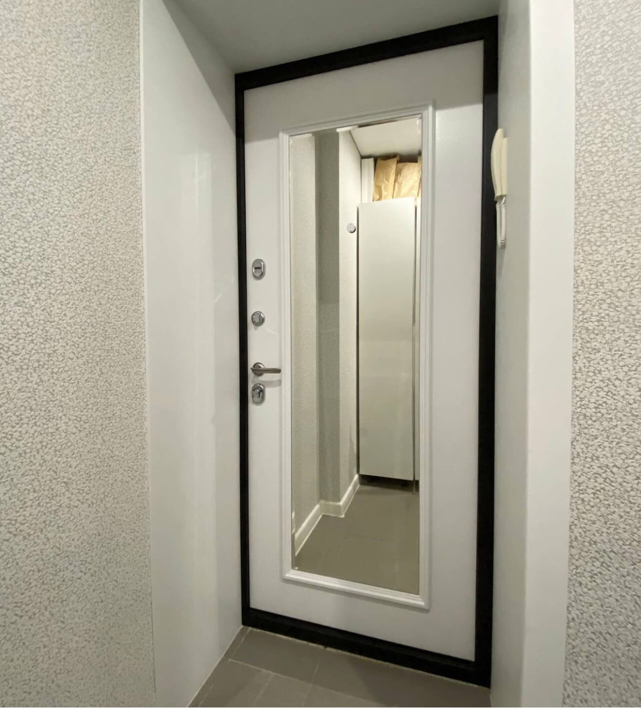 Вместе с менеджером Валерием мы в шоуруме собирали дверь под мой интерьер. Внешне черные, внутри белые с зеркалом. Установили замки моттура, и утеплили дверь технологией “8 слоев”. Очень удобно, когда можно конструировать дверь по своему вкусу. Быстро, мобильно, качественно. Спасибо